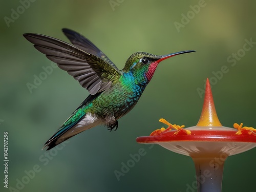 © Illustrations, Obraz premium hummingbird in flight,hummingbird feeding on a flower