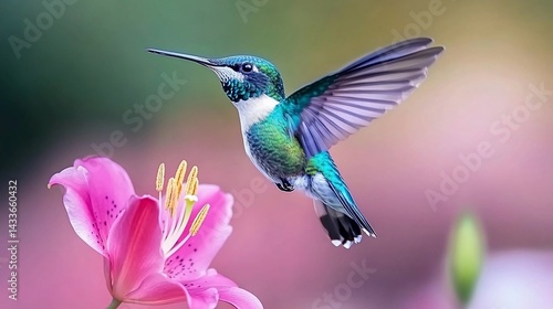 © muhammad, Fototapeta premium Hummingbird in flight near a flower