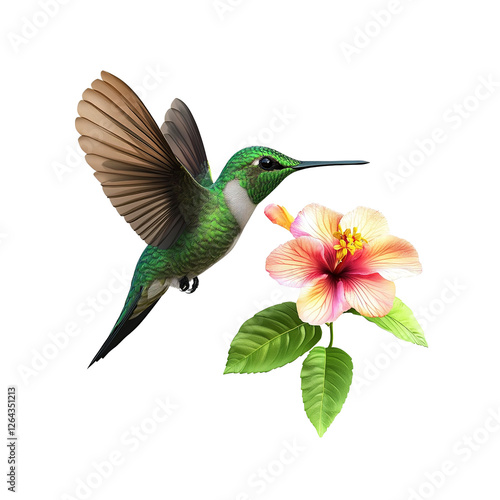 © Chung, Fototapeta premium Hummingbird in Flight Near Hibiscus Flower
