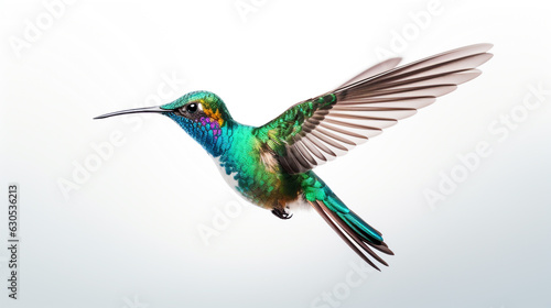 Fototapeta premium Hummingbird in flight on a white background. Generative Ai.
