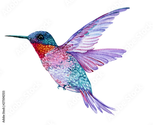 © Nikolai, Obraz premium Hummingbird in flight watercolor illustration on isolated white background