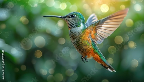 © vanzerim, Fototapeta premium Hummingbird in Flight with Bokeh Background