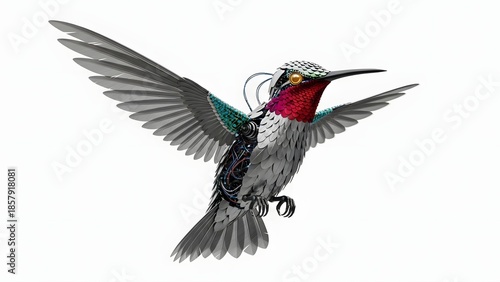 © NASIMA, Obraz premium Hummingbird in flight with iridescent feathers isolated on white background