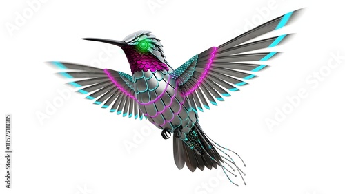 © NASIMA, Obraz premium Hummingbird in flight with iridescent feathers isolated on white background
