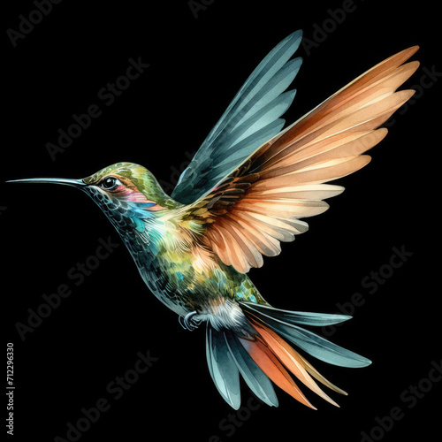 © Khoa, Obraz premium Hummingbird in front of colorful flower