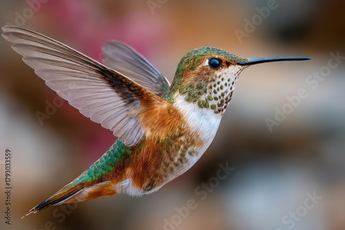 Obraz premium Hummingbird in mid-flight showcasing graceful wing beats