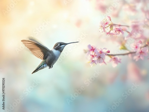 © 2haq, Naklejka premium hummingbird isolated on spring background