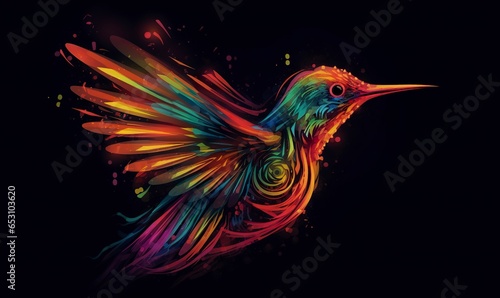 © MdDin, Fototapeta premium hummingbird logo with multiple colors flying through the air..