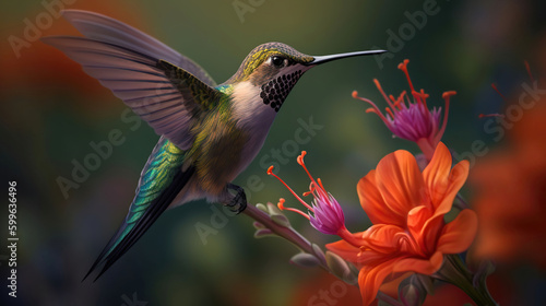© Gasspoll, Naklejka premium Hummingbird near a flower. AI Generative