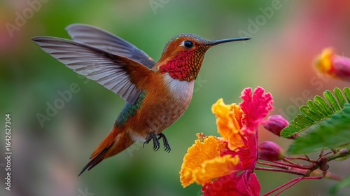 © Fandy creators, Fototapeta premium Hummingbird near flowers