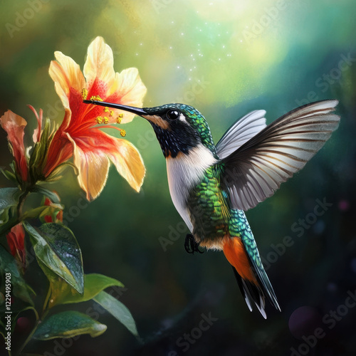 © Thatouch, Naklejka premium Hummingbird near vibrant flower