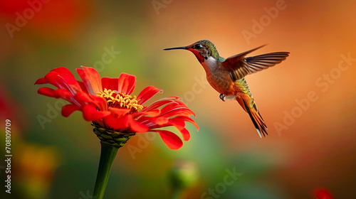 Naklejka premium Hummingbird on a Flower Nectar Nature Wallpaper Background Poster...