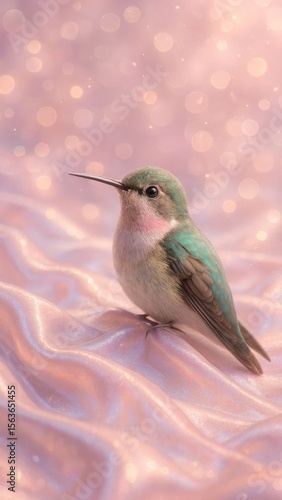 © Rawpixel.com, Obraz premium Hummingbird on shimmering pink fabric