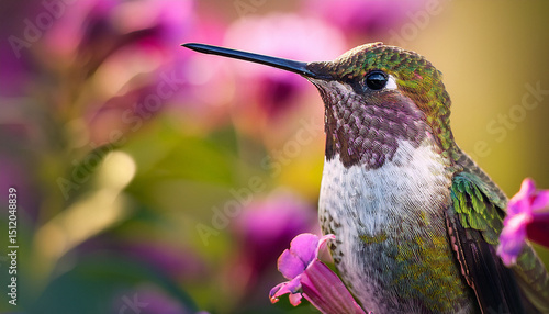 © Lila, Obraz premium hummingbird portrait floral wildlife ai photography documentary style