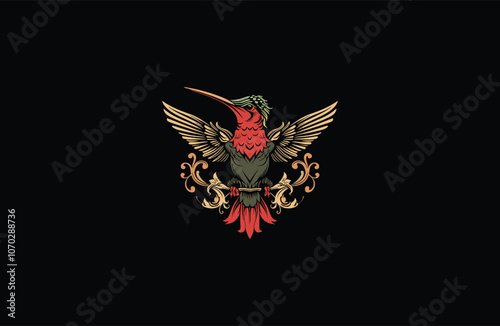 © Seraphyn, Obraz premium Hummingbird royal crest style logo design vector vintage