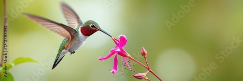 © PomPam, Fototapeta premium Hummingbird's Delight: Nectarous Encounter in a Floral Oasis