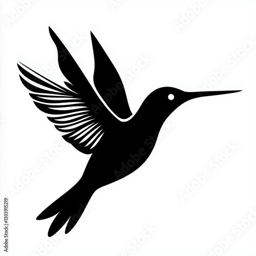 Fototapeta premium Hummingbird Silhouette Art: Elegant Black Bird in Flight, Minimalist Wildlife...