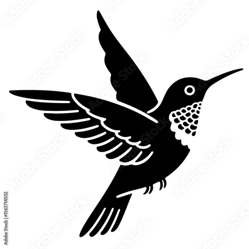 © Zulfa, Fototapeta premium Hummingbird Silhouette, Black and White Vector Illustration, Bird Design Element