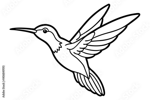 © kanchanrani, Obraz premium hummingbird silhouette line art vector illustration