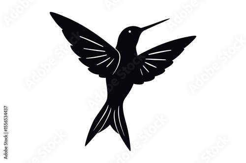 © Madhusudan, Obraz premium Hummingbird silhouette vector bundle illustration, Black Hummingbird silhouette vector
