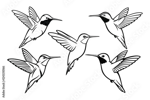 Fototapeta premium Hummingbird silhouette vector graphic bundle clipart.