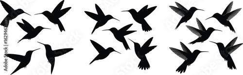 Fototapeta premium Hummingbird Silhouettes in Flight Pattern Isolated on White Background for Design and Illustration