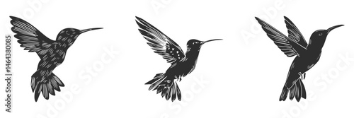 Fototapeta premium Hummingbird Silhouettes In Flight Set. Graceful Avian Motion And Elegance...