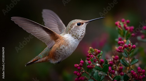 Obraz premium Hummingbird sips flower nectar