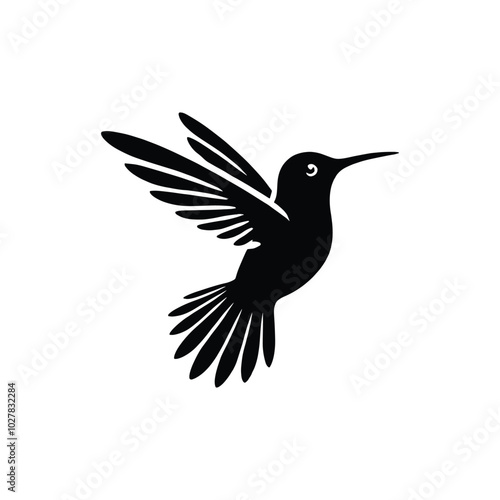 © Moniruzzaman, Obraz premium Hummingbird Vector Illustration – Black and White Flying Bird Graphic Design