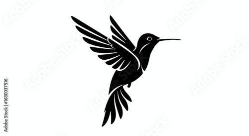 Fototapeta premium Hummingbird vector illustration, black silhouette PNG, stylized bird design,...