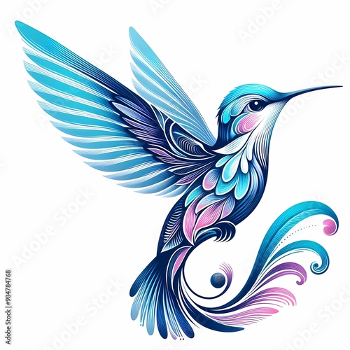 © XIAOBING, Obraz premium hummingbird vector image on white background