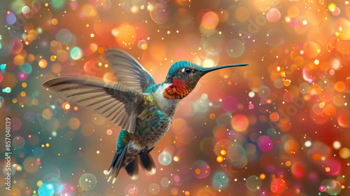 © Patthranit, Fototapeta premium hummingbird with colorful background.