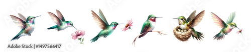 © JimzStd, Obraz premium Hummingbirds aerial ballet near floral blooms