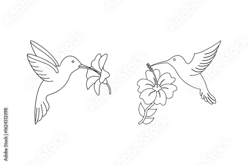 © Sarola, Fototapeta premium Hummingbirds feeding on hibiscus flowers nectar