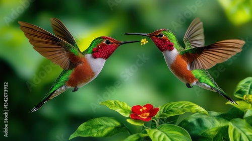 © wulan, Fototapeta premium Hummingbirds in Flight: A Symphony of Colors and Nature's Grace