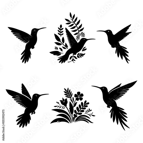 Obraz premium Hummingbirds Silhouette Set Vector Art illustration with a white background