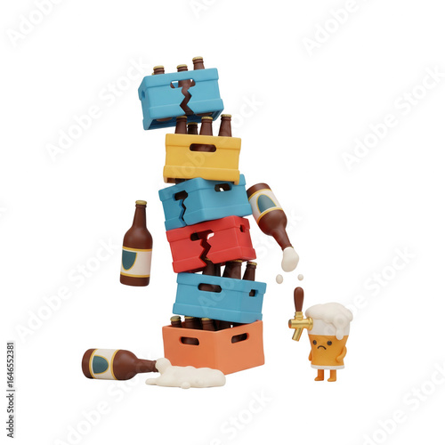 Obraz premium Humorous Cartoon Beer bottles and boxes Stacked On transparent Background...
