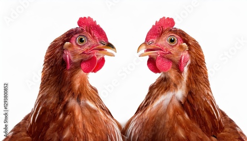 © netsay, Fototapeta premium Humorous Closeup Portrait of a Strikingly Colored Chicken against a Pure White Background, Showcasing Vibrant Feathers and Amusing Expression in an Engaging Photograph