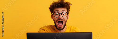 © YouAreBeautiful, Obraz premium Humorous Fake Computer Error Prank for April Fools' Day wide banner - yellow background