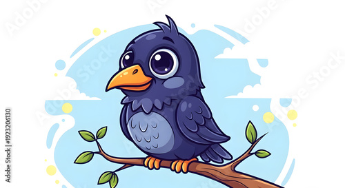 Fototapeta premium Humorous illustration of a black bird with a quirky personality