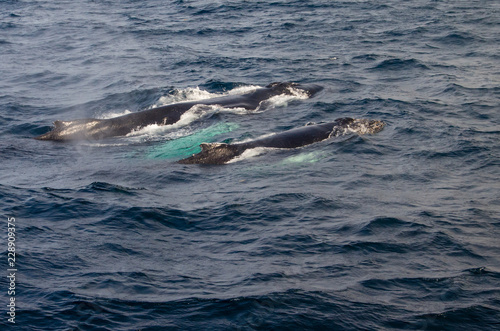 © leene50, Fototapeta premium Humpback Mother and Calf Swimming in Ocean on Sunny Day