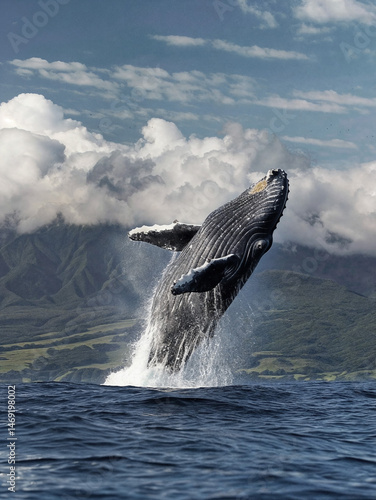 © Vladimir, Fototapeta premium Humpback Whale Breaching in Ocean Waters, Maui