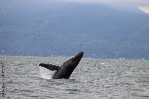 Fototapeta premium humpback whale breaching to the side off the coast of Vancouver,