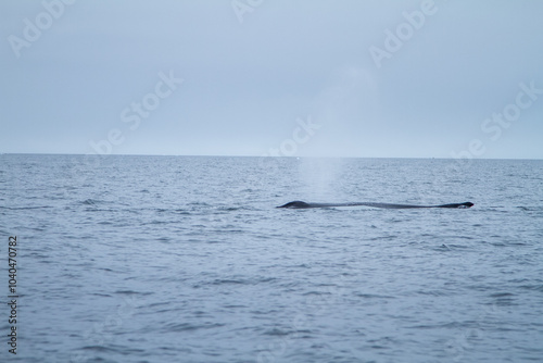 Fototapeta premium Humpback Whale Breathing in Arctic Ocean