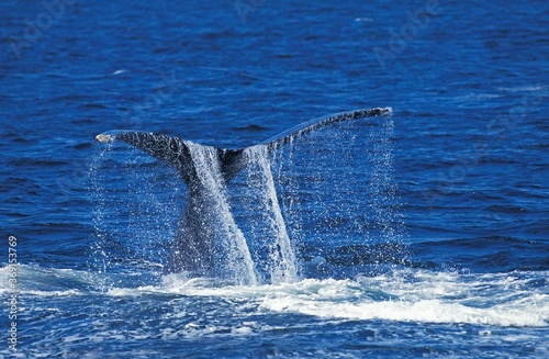 Naklejka premium HUMPBACK WHALE megaptera novaeangliae, ADULT HITTING WATER WITH ITS TAIL, ALASKA