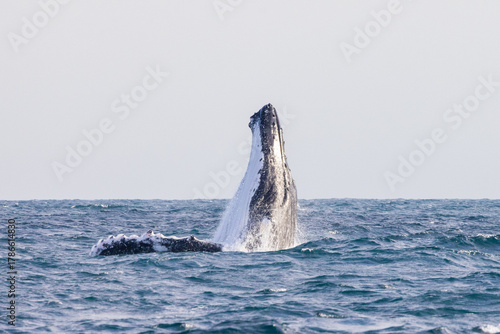 Fototapeta premium Humpback Whale seen dramatically breaching out of the water during their...