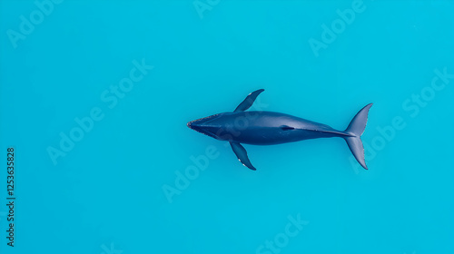 Fototapeta premium Humpback whale swimming in crystal clear turquoise water. Seen from above. Ideal for environmental concepts and marine life projects