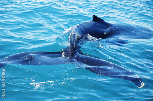 Obraz premium Humpback Whale Swimming in Crystal Clear Waters.