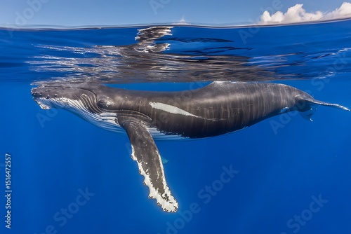 © Indra, Naklejka premium Humpback whale swimming just below surface
