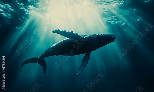 © simba kim, Fototapeta premium humpback whale swimming under the ocean, Generative AI